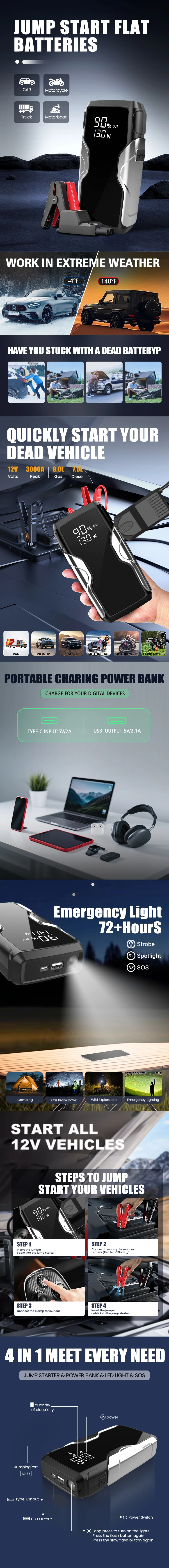 4. POTENTE INICIADOR DE JOMBA DE CARRO: Com corrente de pico, este acionador de partida de carro pode dar partida nos veículos de 12V até motores diesel e gasolina . Adequado para carros, SUVs, caminhões, vans, motocicletas ou barcos e assim por diante.