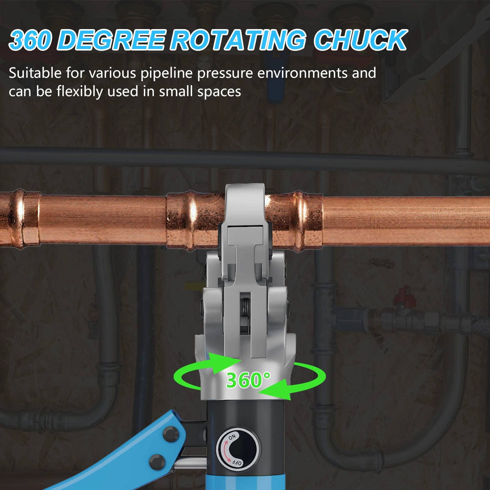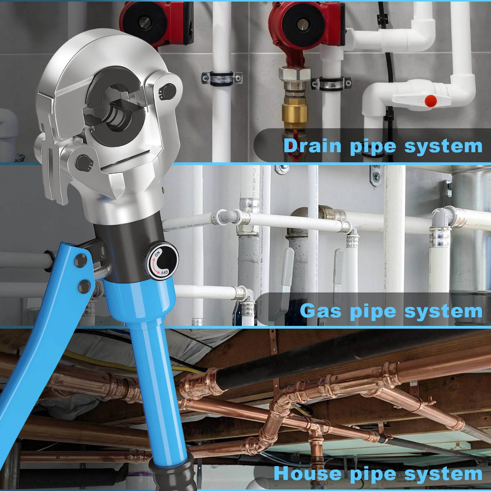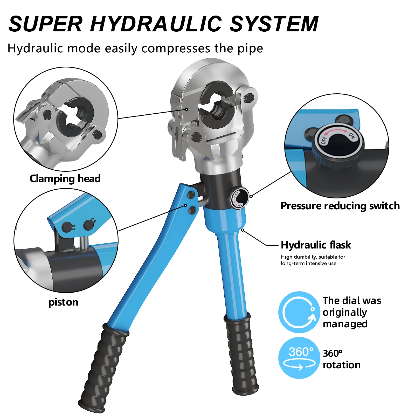 【Alto desempenho】: A cabeça do tubo composto da braçadeira de crimpagem pode girar 360°, tornando-o adequado para uso em espaços estreitos.Ele ADAPTA de forma flexível a crimpagem de vários layouts de tubos, incluindo conexões retas, conexões curvas e conexões em forma de T.
