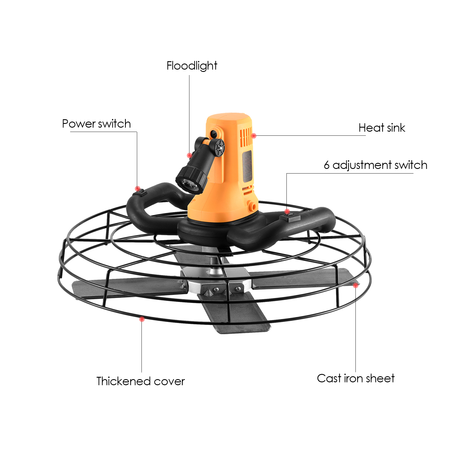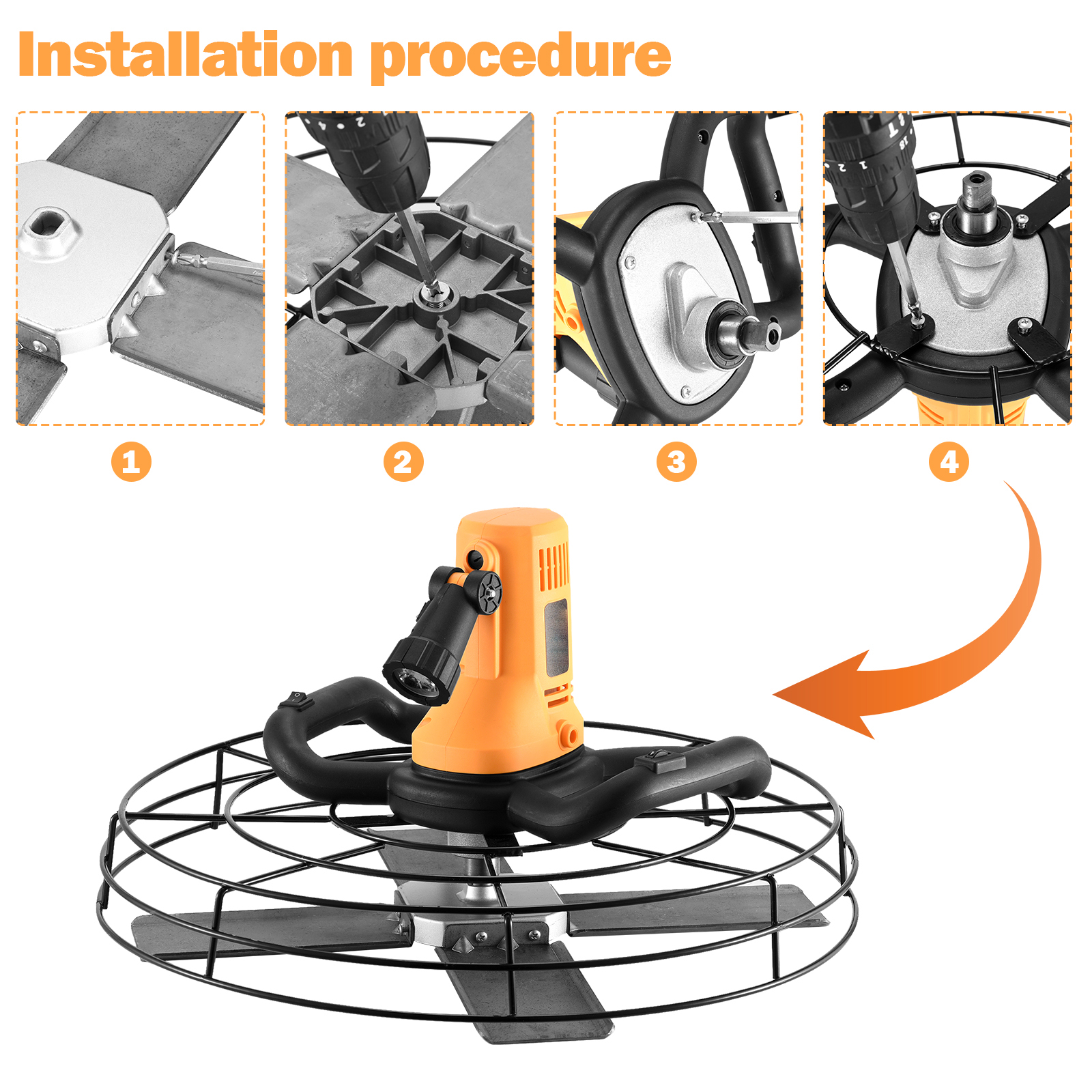 Equipado com 4 lâminas de ferro para parede reboco movidas a aço, projetadas para obter o acabamento de concreto perfeito.