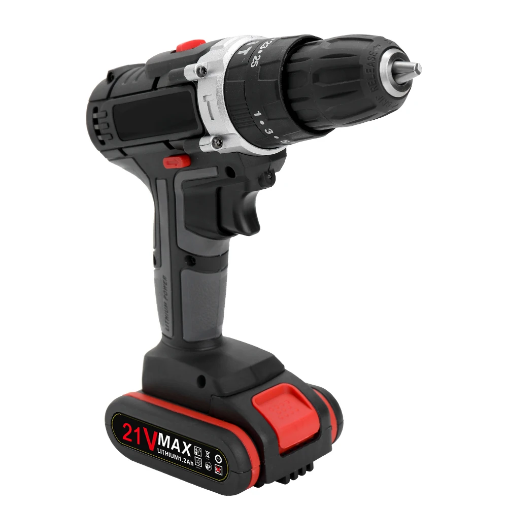 Esta furadeira elétrica é equipada com bateria de alta potência, não limitada por fios, a bateria é fácil de instalar e desmontar, seguro de usar, fácil de transportar, apropriado para o uso home e o transporte exterior.