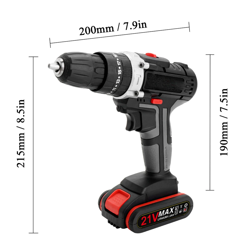 Furadeira elétrica tamanho: 185*180*55mm / 7.3*7.1 * 2.2in